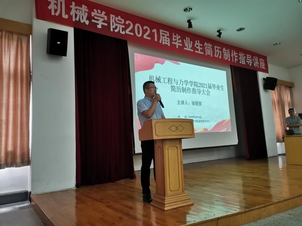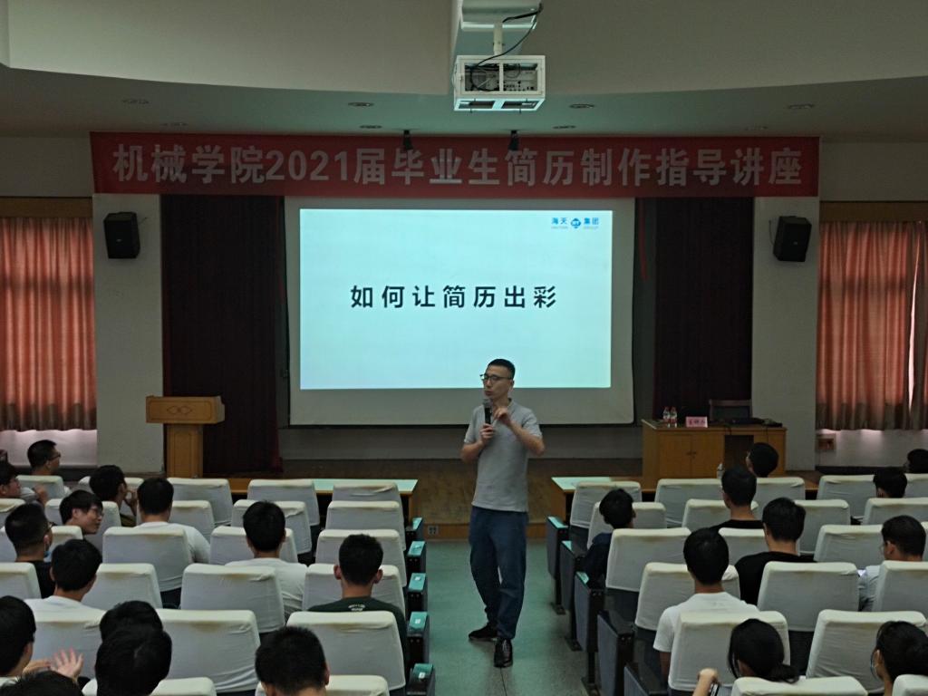 2021届毕业生简历制作指导讲座在绣山工程楼三楼报告厅举行,学院就业指导中心邀请了海天集团资深人力资源主管张程斐作为主讲人,他给大家带来了一场干货满满的简历制作盛宴,讲座由学院就业指导中心主任张万兵主持,全院2021届毕业生100余人聆听了讲座。