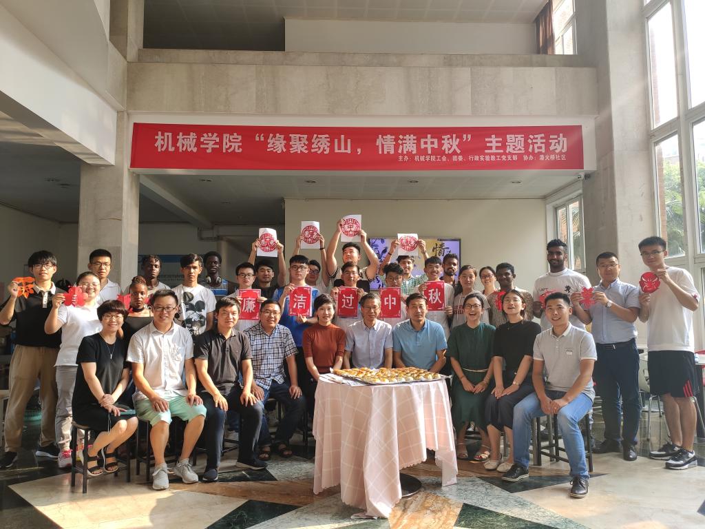 欢度中国节,凝聚师生情。在中秋佳节即将到来之际,9月11日下午,机械学院在绣山工程楼一楼大厅举行“缘聚绣山,情满中秋”主题活动。学院全体党政领导亲临现场,与本科生、研究生和留学生代表欢聚一堂,共庆中华传统佳节。