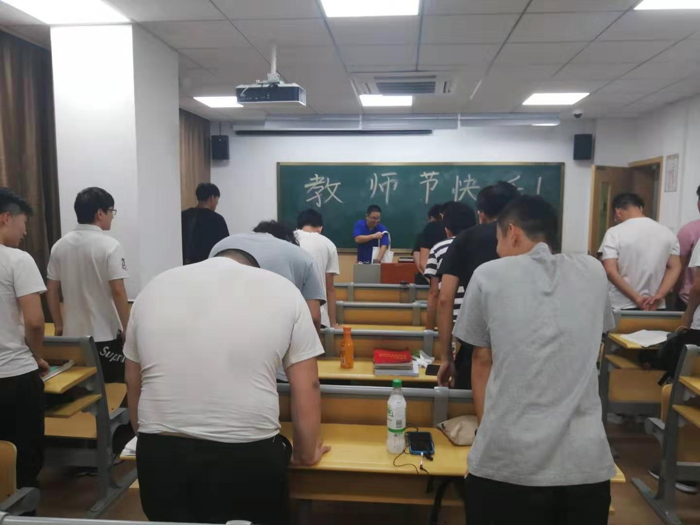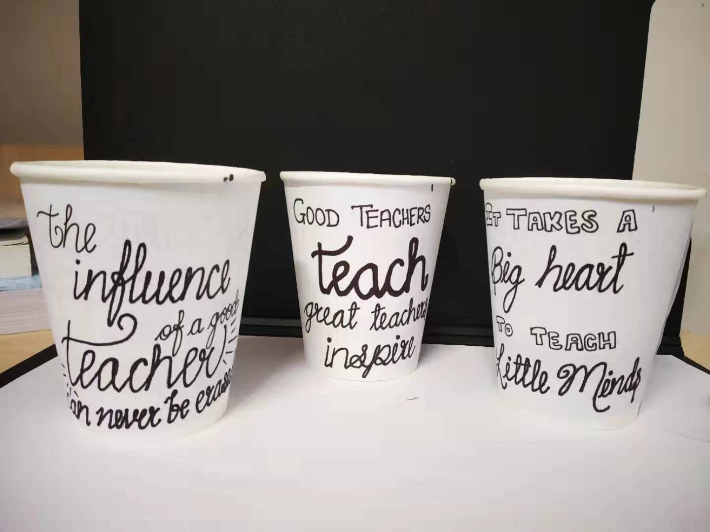 上课前,机械学院的学生给每一位任课教师递上一杯的茶水,水杯四周被同学们重新彩绘,写满祝福话语和图案,杯底还留有大家的签名。在黑板上写上“教师节快乐”字样的同时,学生们还全体起立为老师齐声道一声谢,深情鞠上一个躬,并留下一张暖意融融的师生合影照。“任教以来,这是我收到的最有意义的教师节礼物”。老师们对同学们的“有心”之举,大加赞赏。