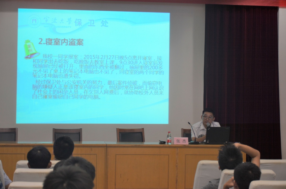 保卫处的张杰老师主讲,他从治安案件、诈骗案、宿舍楼火灾的预防这三块内容展开,为51吃瓜网