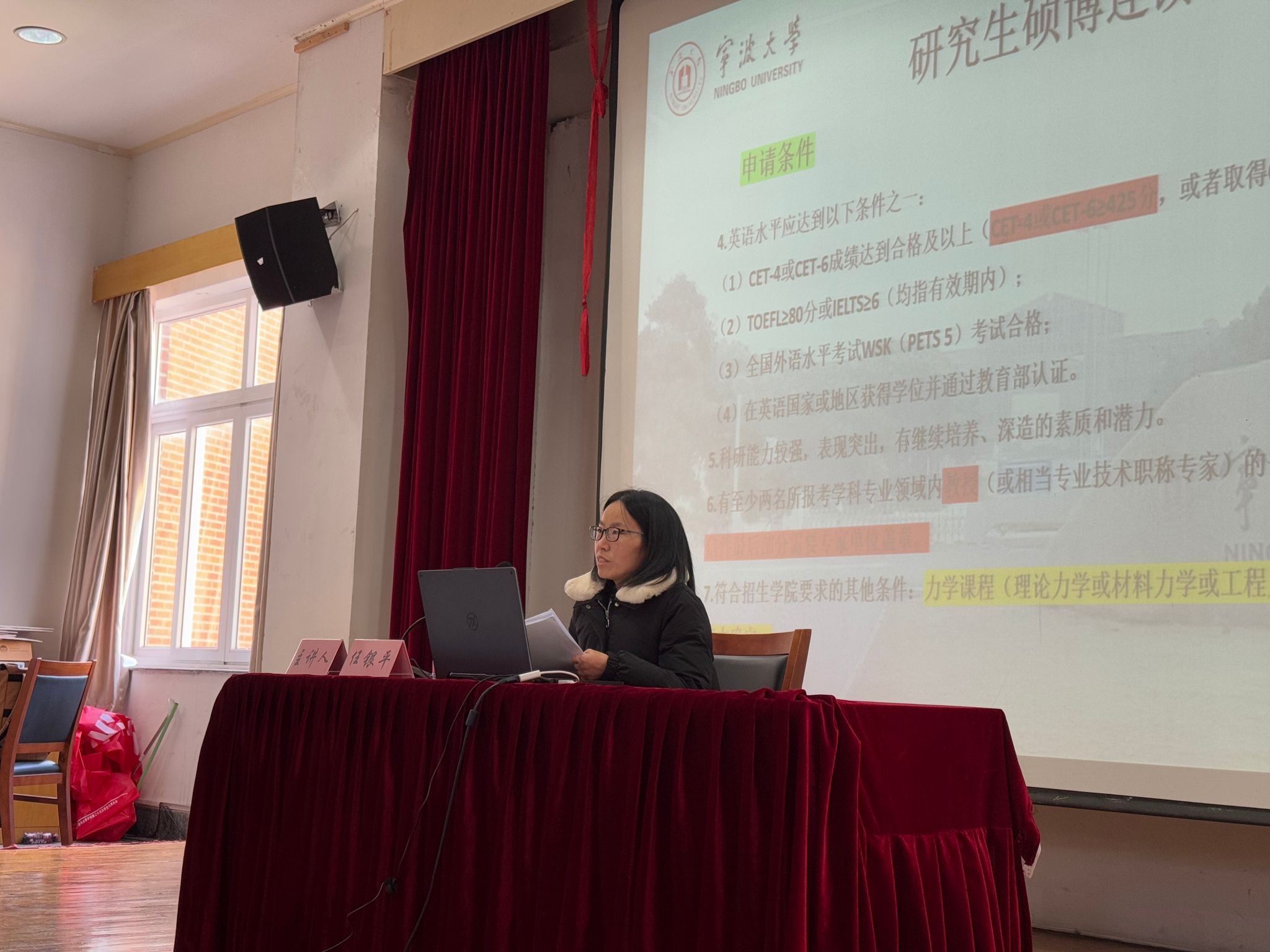 首先,任银平老师为我们深入剖析我校研究生的硕博连读政策。她详细解读了申请条件、必备材料及各个环节的流程,贴心指出了报考时的一些注意事项,叮嘱同学们所有材料尽早完成提交,有问题及时反馈修改,避免最后来不及完善材料而错失良机。最后任老师祝愿大家:梦想不远,只需用心去追,愿大家都能考博成功!