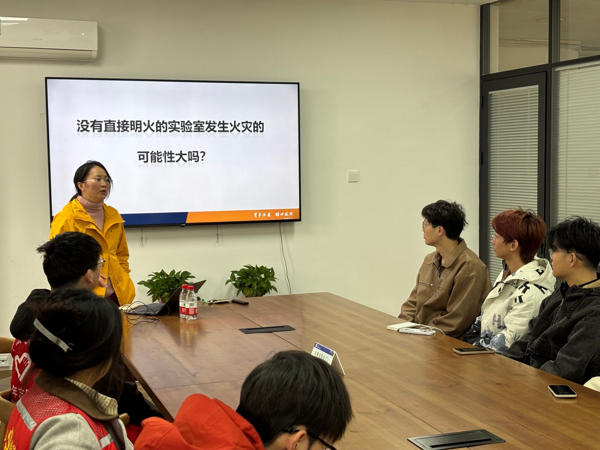 此次活动,特邀请学校资产与实验室管理处副处长张春丹和江北区消防救援大队白沙救援站副站长泮科宇两位老师担任主讲嘉宾。活动伊始,泮科宇副站长首先以“高层建筑消防安全”主题进行授课,并围绕高层建筑的基本常识、火灾特点、应对和救援以及消防安全管理注意事项等内容进行了详细介绍,提醒同学们在日后出行与起居期间要加强防范意识,增进逃生风险评估与识别能力。张春丹副处长则结合最新的实验室火灾案例,深入剖析了火灾的常见成因,如线路老化、操作不当、电气设备故障等,同时还详细讲解实验室安全操作规程,从实验设备的正确使用,到化学试剂的妥善存放,通过鲜活案例和规范操作流程,师生们真切感受到实验室实验室安全的重要性。
