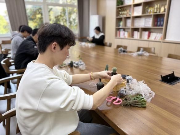 随后进入沙生植物创作环节,党员们领取多肉植物、花盆、彩石等材料,充分发挥创意进行自由创作,制作出一个个个性化的沙生植物作品。在动手实践过程中,党员们切实感受到绿色种植带来的乐趣和成就感,也加强了对生态文明建设的认同。
