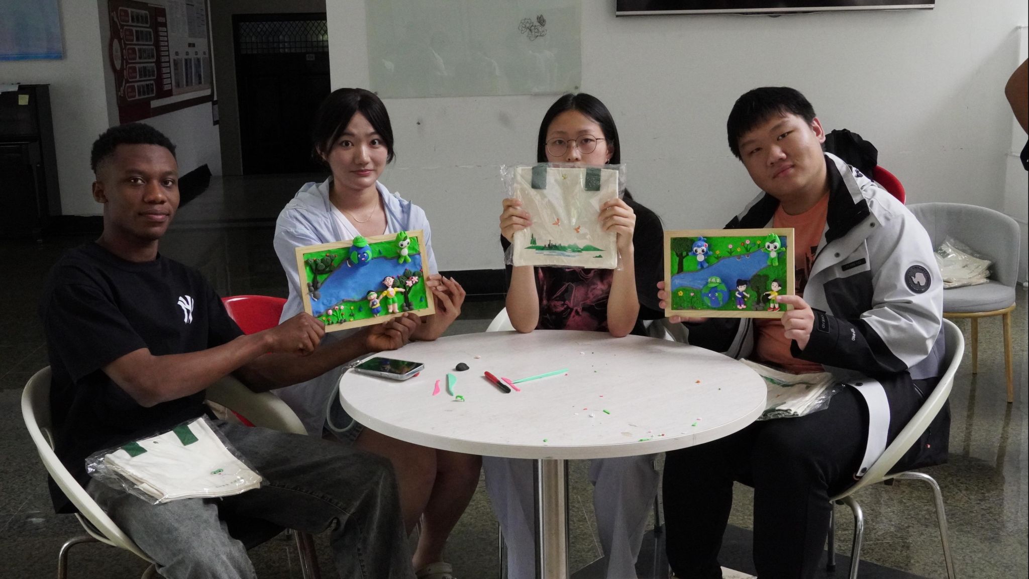 在创作过程中,同学们热情高涨、分工协作,揉捏、塑形,每一道工序都倾注了巧思与心意。面团在指尖流转,一个个寓意深远的环保主题形象逐渐呈现:有象征绿色地球的蓝绿球体,有蜿蜒流淌的河流、苍翠挺拔的树木与绚烂盛放的花朵,也有人与自然和谐共处的温馨场景,形象生动,寓意深刻。国际留学生们也积极参与,与中国学生围坐一桌,热烈交流、互学互鉴,现场不时传来阵阵笑声与赞叹,营造出一幅融合传统技艺与绿色理念的和谐画面。留学生FARID SADIK ISSA现场分享道:“这是我第一次亲手接触中国传统的面塑艺术,没想到它可以和环保理念结合得如此自然。这次活动不仅让我学到了中国的非遗文化,也让我更深刻理解了中国提出的绿色发展理念。我会把这份独特的体验带回家乡,与朋友们分享。”他的发言引起在场师生共鸣,进一步展现了中华优秀传统文化在国际青年群体中的吸引力与影响力。
