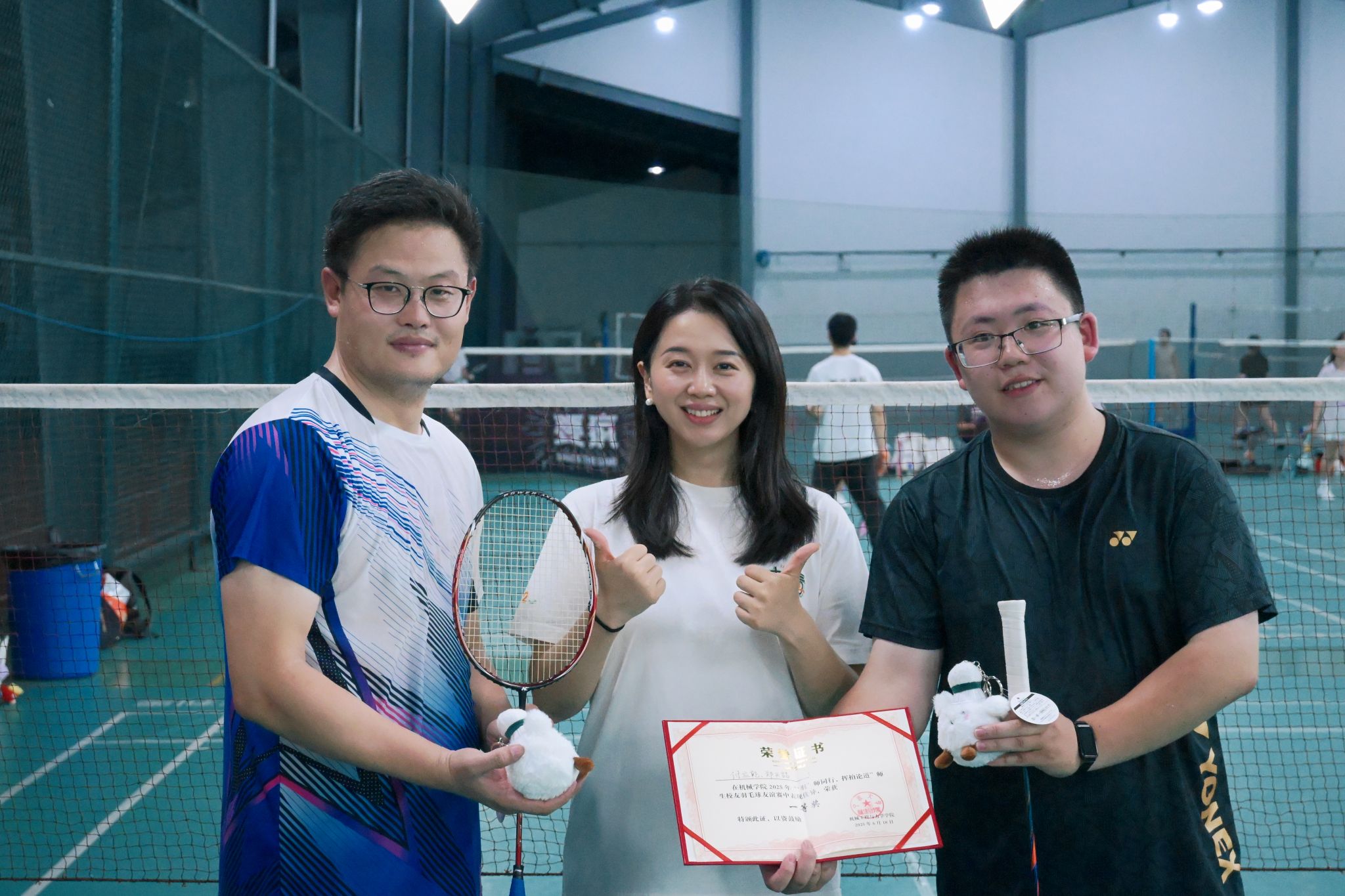 半决赛中的一场对决,堪称本场赛事的 “高光之战”。对阵双方中的第 3 组队伍,由经验丰富的教师付应乾和实力强劲的学生郑天喆组成,他们自开赛以来便凭借默契配合和高超球技一路过关斩将。此次面对同样实力不俗的对手,比赛从一开始便陷入胶着,比分一路紧咬,交替上升。当比分定格在 21:21 时,比赛进入白热化的加赛环节。他们屏气凝神,眼神中满是坚定,面对对手的猛烈进攻,他们沉着应对,每一次挥拍都倾注全力,每一次救球都拼尽全力。关键时刻,第 3 组队伍凭借更沉稳的心态和更果断的战术调整,抓住稍纵即逝的机会,连得两分,以 23:21 的比分惊险拿下比赛,成功晋级决赛。