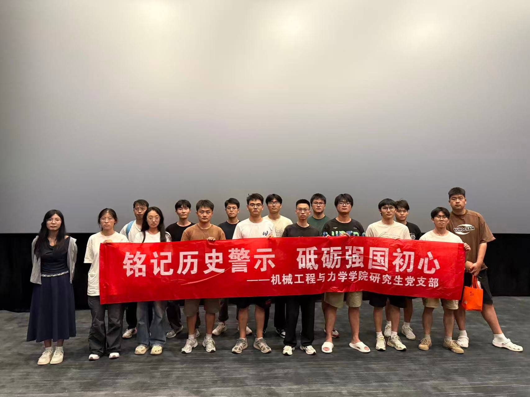 当晚六点十分,支部党员准时集结,在“铭记历史警示 砥砺强国初心”的横幅引领下,统一前往影院。此次将活动课堂从校园移至影院,旨在通过沉浸式的观影体验,引导党员深刻铭记历史,在回溯民族苦难记忆中筑牢信仰之基,砥砺强国之志。