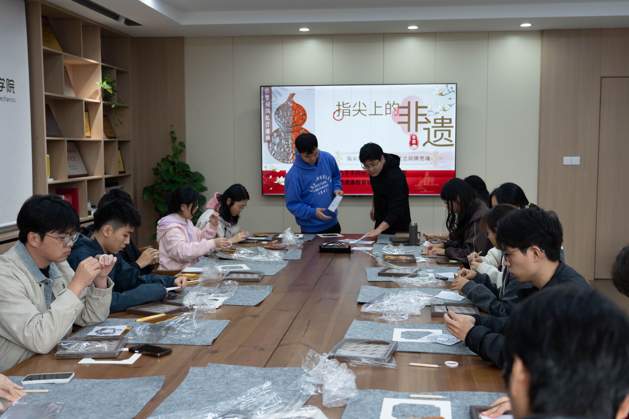 在为弘扬中华优秀传统文化,厚植工匠精神与红色信仰,2025年11月5日,我院机械工程研究生第九党支部联合匠心育人心理健康教育辅导站,在绣山工程楼208会议室组织开展“指尖錾刻承匠心,方寸之间铸党魂”非遗仿錾刻浮雕锡纸画手工党日活动暨心理小憩站活动。