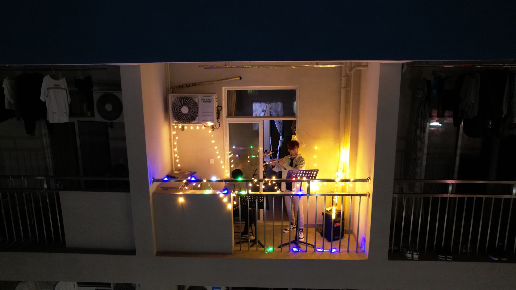 据悉,阳台音乐会并不是机械学院第一次举办,在特殊的2021年,也有几位同学在阳台用音乐传递了抗疫的勇气和希望。“上一次在疫情笼罩的校园里,音乐抚平了压抑的情绪,让疫情生活充满了力量。这次阳台音乐会是对上一次音乐会的继承和发扬,熄灯一小时,在这静谧的氛围里,同学们感受着音乐的魅力,欣赏着精彩的演奏,传递着生活的美好和希望,是我大学生活里最难忘的回忆。”参加过两次阳台音乐会的杨易衡同学感叹道。