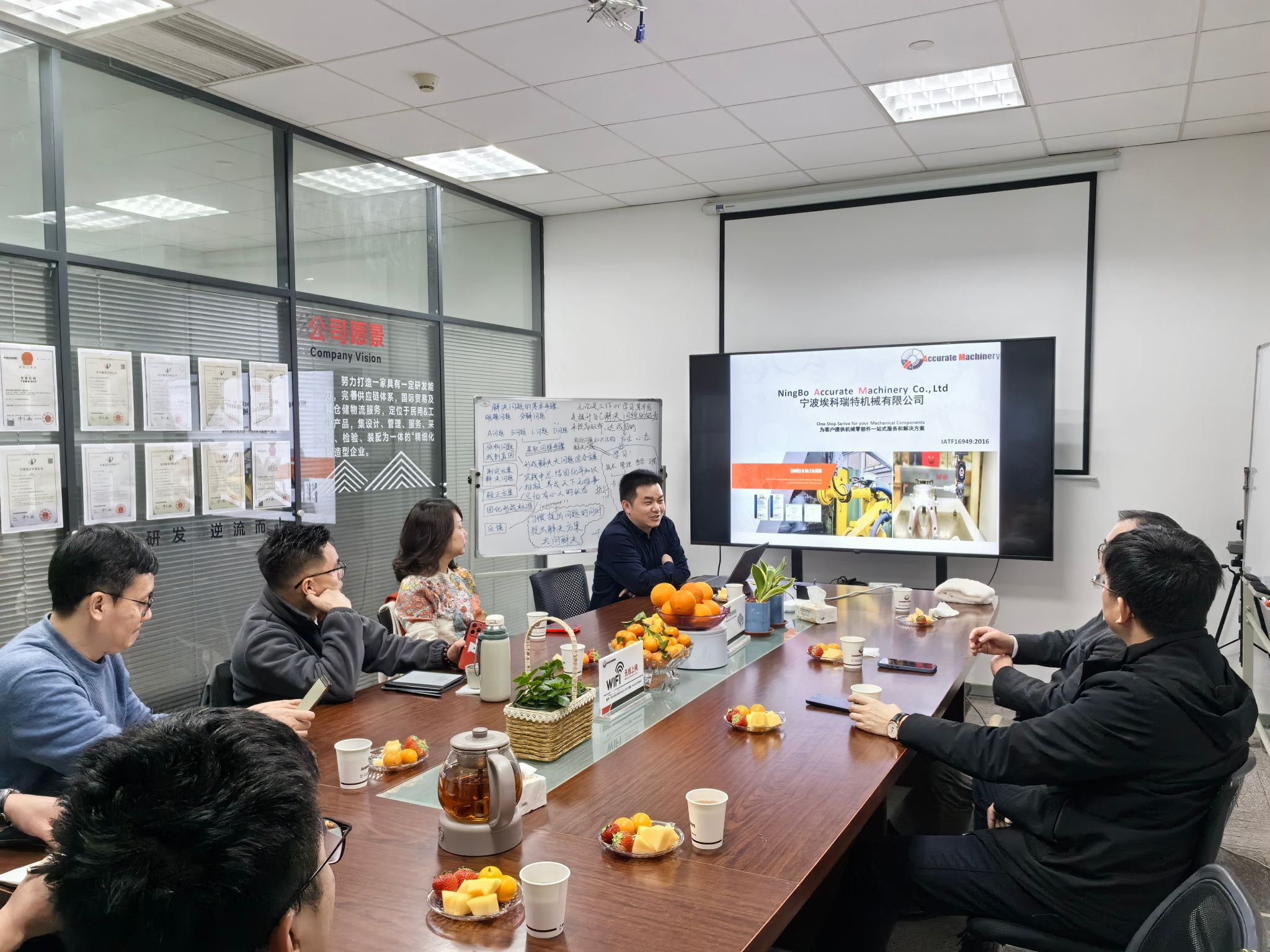 鄞州校友会会长董建伟、机械学院校友会秘书长陈碧芸、智能制造分会执行会长李杰、机械学院党委副书记沈妍伶等十余位校友走进了2001级机械设计制造及其自动化专业校友陈胜的宁波埃科瑞特有限公司。