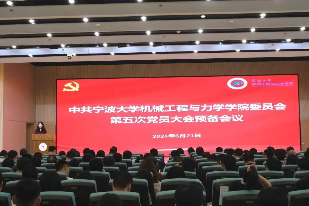 6月21日下午,中国共产党宁波大学机械工程与力学学院委员会第五次党员大会在朱学林报告厅隆重举行。会议由学院党委副书记、纪委书记沈妍伶主持,325名正式党员和30名预备党员参加大会,学校第九考察组成员全程列席大会。