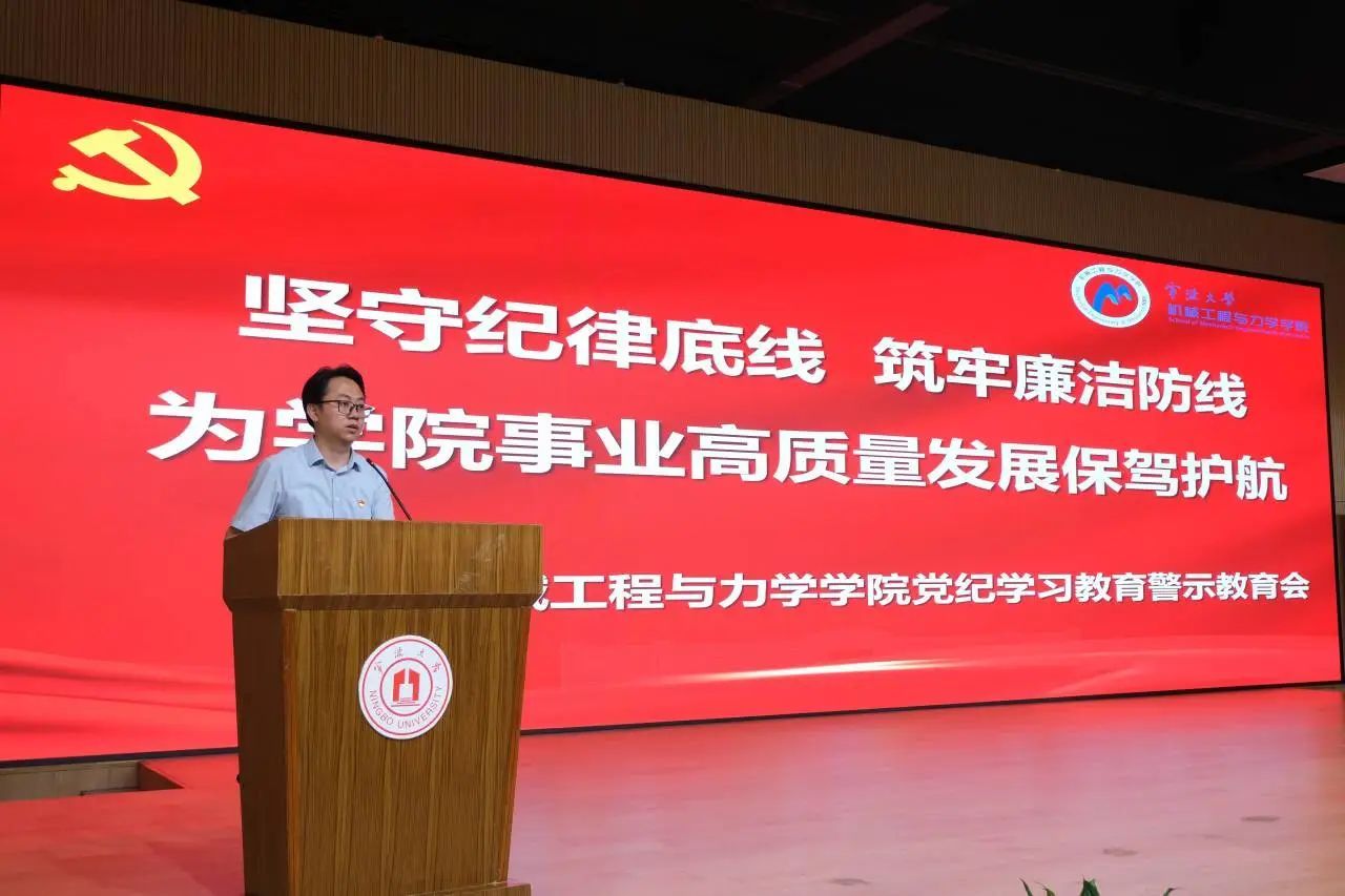 会议期间,学院党委书记王智腾做题为《坚守纪律底线 筑牢廉洁防线 为学院事业高质量发展保驾护航》的纪律党课,带领全体党员对照《中国共产党纪律处分条例》,针对学校党委对学院巡察和审计中发现的问题,结合警示教育案例,开展警示教育。
