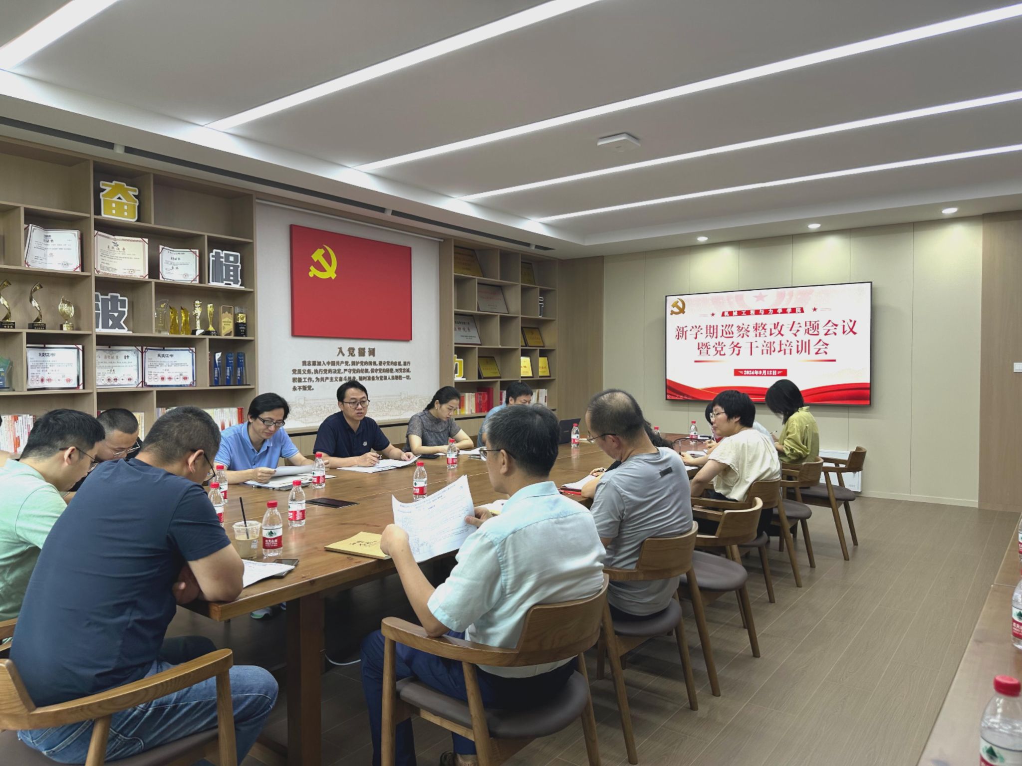 9月12日下午,机械学院在绣山工程大楼208会议室召开巡察整改专题会议暨新学期第一次党务干部培训会,部署落实校党委巡察反馈意见整改任务。会议由学院党委书记王智腾主持。