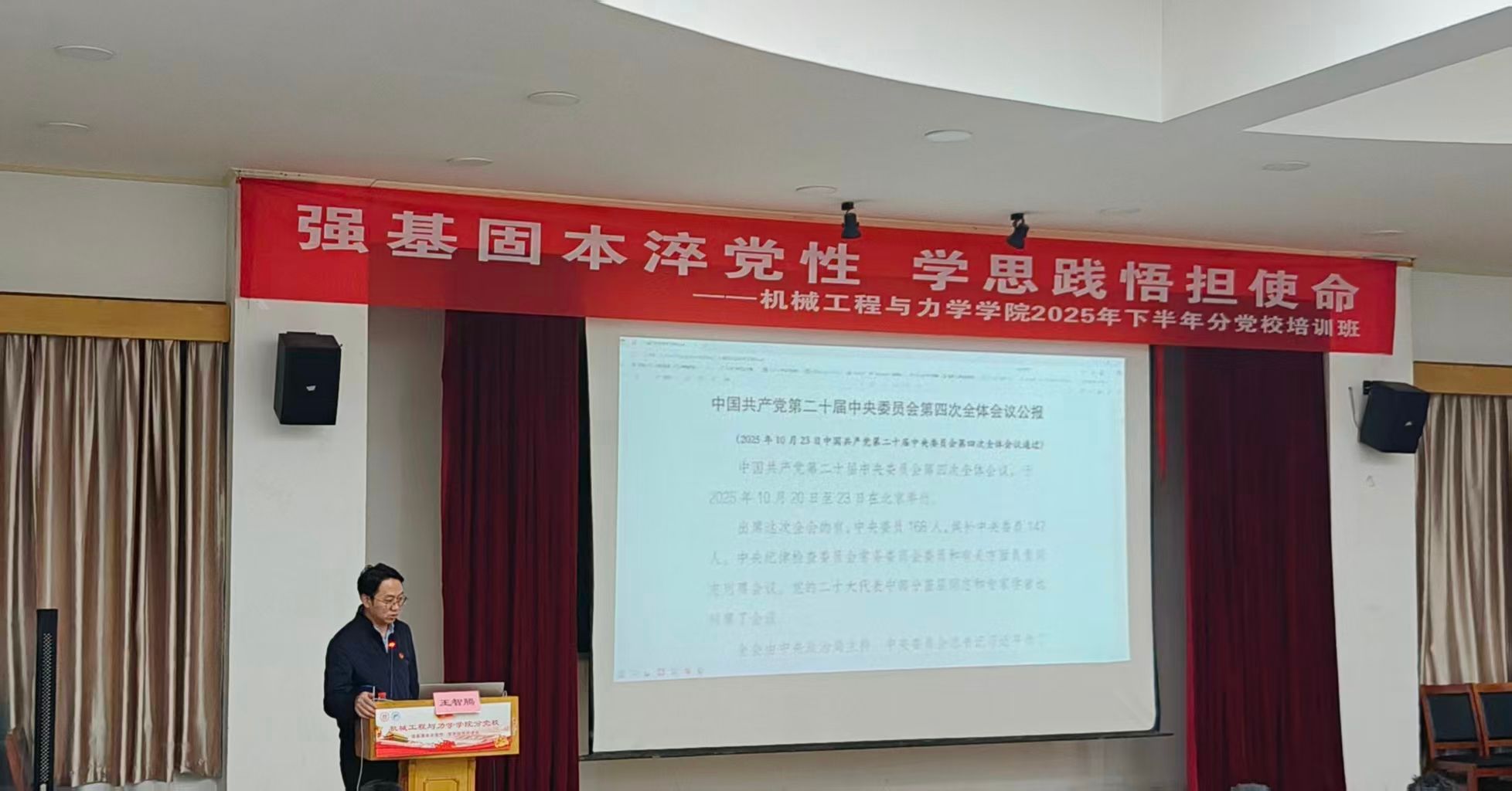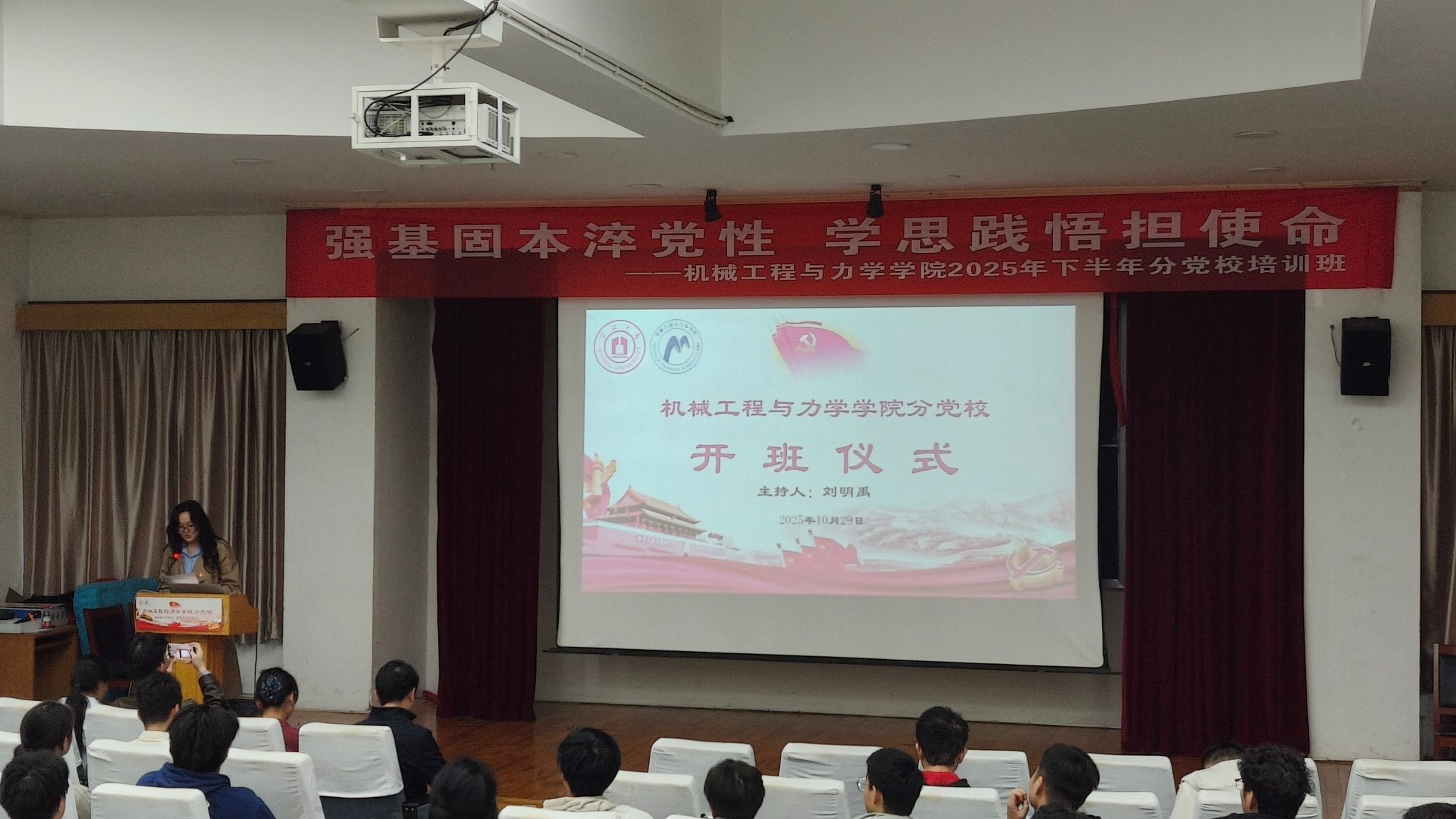 10月29日,机械工程与力学学院2025年下半年分党校顺利开班,各学生党支部书记、学院第33期预备党员培训班、第18期发展对象及第40期积极分子培训班学员参加,开班仪式由学生党建中心指导老师刘明禹主持。