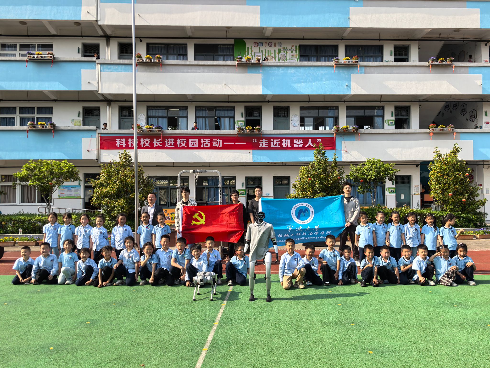 近日,精密检测与仪器党支部委员杨凯盛、研究生党支部钱灿、阮阳飞等同学组成的科普团队赴宁波市江北区尚德学校开展“科技校长进校园——走近机器人”科普教育主题党日活动。