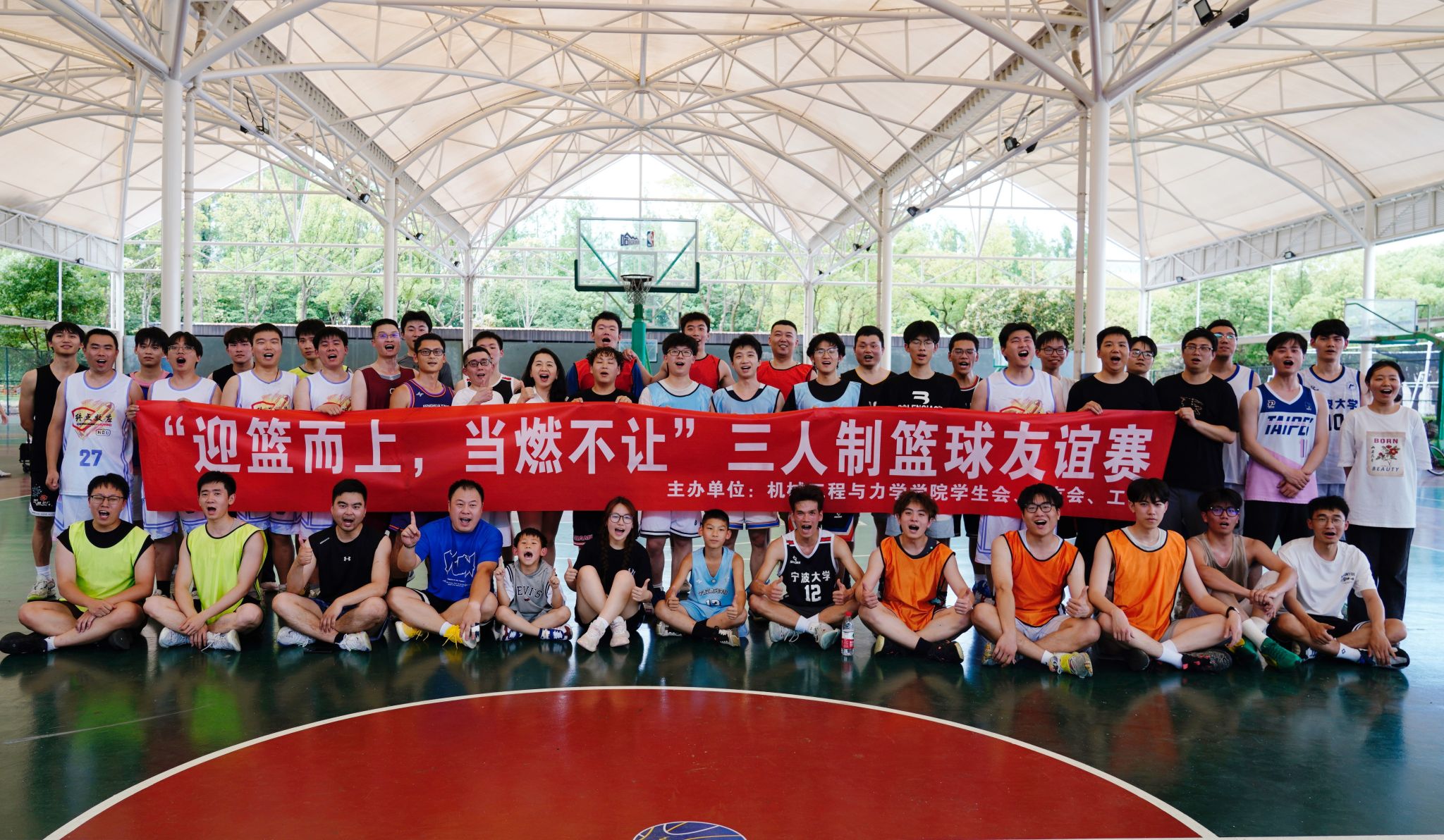 为加强校友与学院的密切联系,响应校友们参与学院文体活动的热烈呼声,2024年6月16日,机械工程与力学学院精心策划的“迎篮而上,当燃不让”三人制篮球友谊赛,在宁波大学李兴贵篮球场火热展开。此次活动由机械学院学生会、校友会、工会联合举办,吸引了四十余位校友、教师和同学们积极参与,新老宁大人欢聚一堂,共同感受篮球运动的魅力。