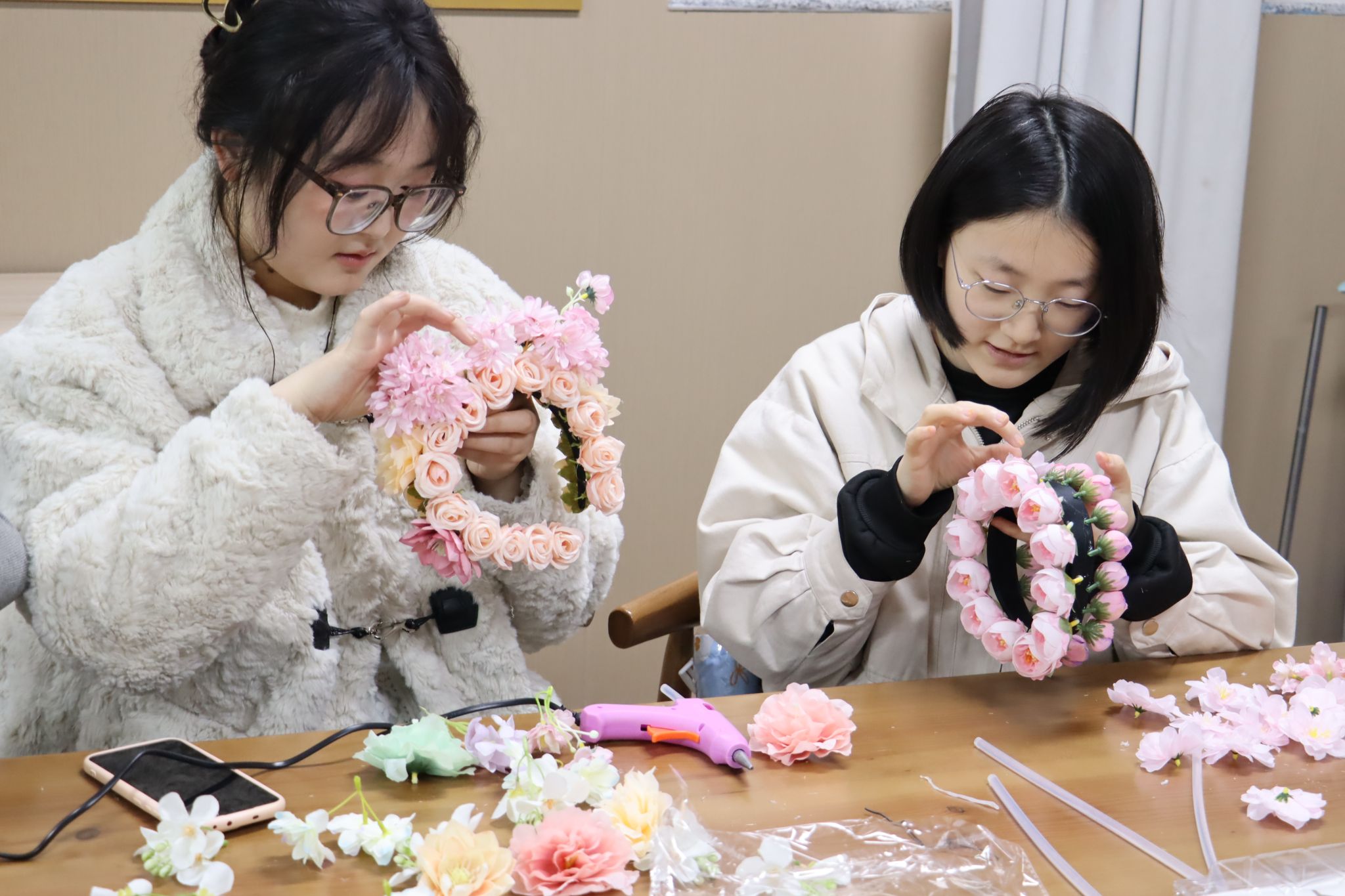 机械学院开展“巧手簪花庆佳节,巾帼芳华绽绣山”主题簪花活动