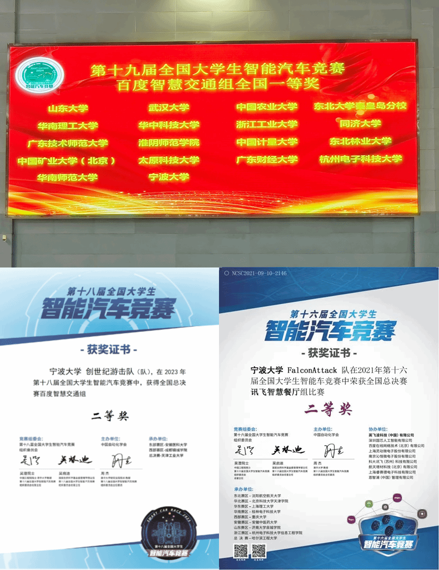 全国大学生智能汽车竞赛是受教育部高等教育司委托、由中国自动化学会主办的全国顶级赛事,是以智能汽车为研究对象的创意性科技竞赛,是教育部倡导的大学生科技竞赛之一,也是宁波大学认定的A类学科竞赛。大赛以“立足培养,重在参与,鼓励探索,追求卓越”为指导思想,激发大学生从事科学研究与探索的兴趣和潜能,培养大学生的综合知识运用能力、工程实践能力和创新精神。参赛过程涵盖了控制、模式识别、传感技术、汽车电子、电气、计算机、机械、能源等多个学科的知识,对培养学生知识融合和实践动手能力具有良好的推动作用。