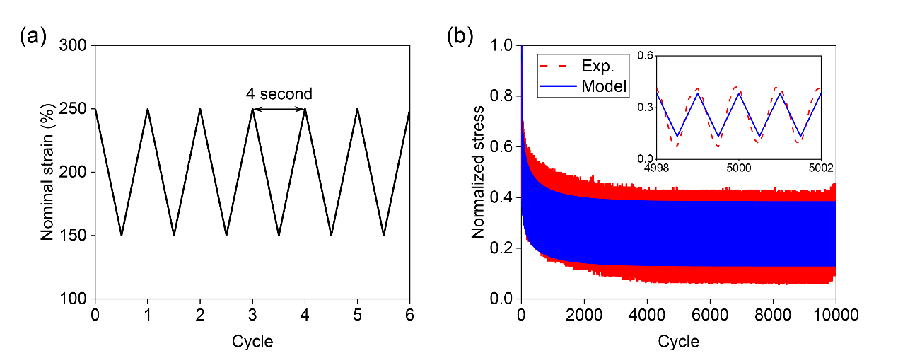图2 弹性体在10000次循环载荷实验结果和理论预测对比。
