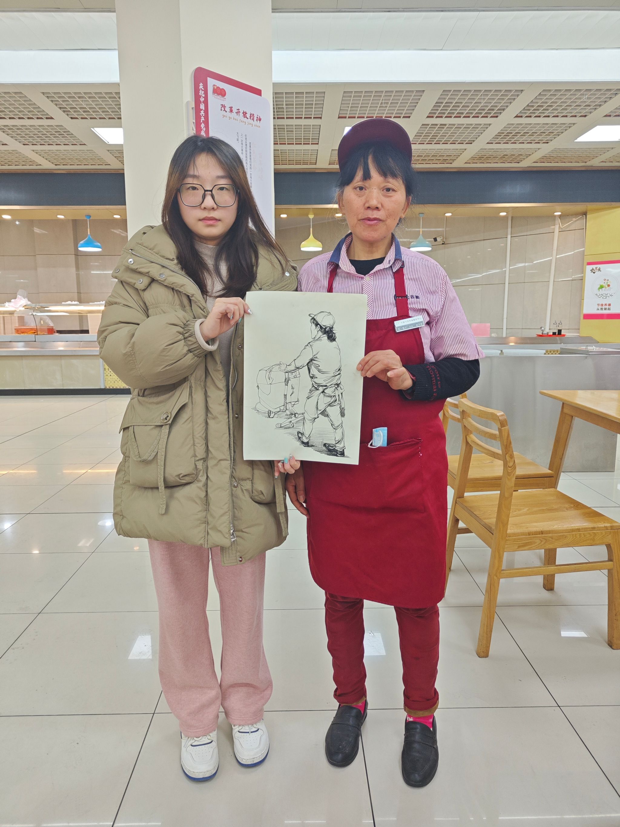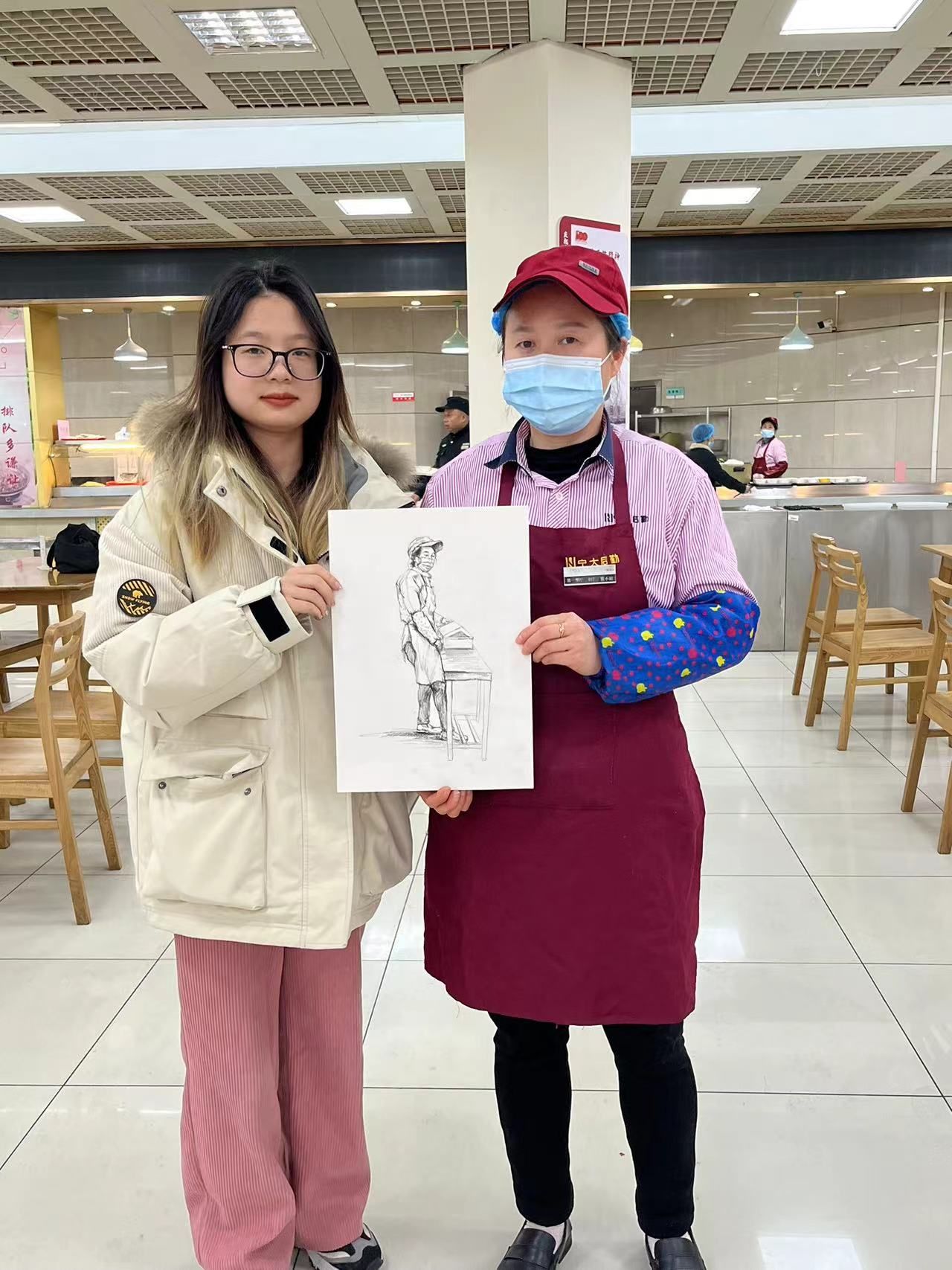 同时,潘天寿艺术学院的志愿者们还发挥了他们的艺术天赋,为学校后勤工作者创作了画作。他们通过绘画表达了对学校后勤工作的理解和敬意,用视觉艺术的形式记录下了校园后勤工作的点点滴滴。这些作品不仅美化了学校环境,也为后勤工作者们带来了精神上的慰藉和鼓励。