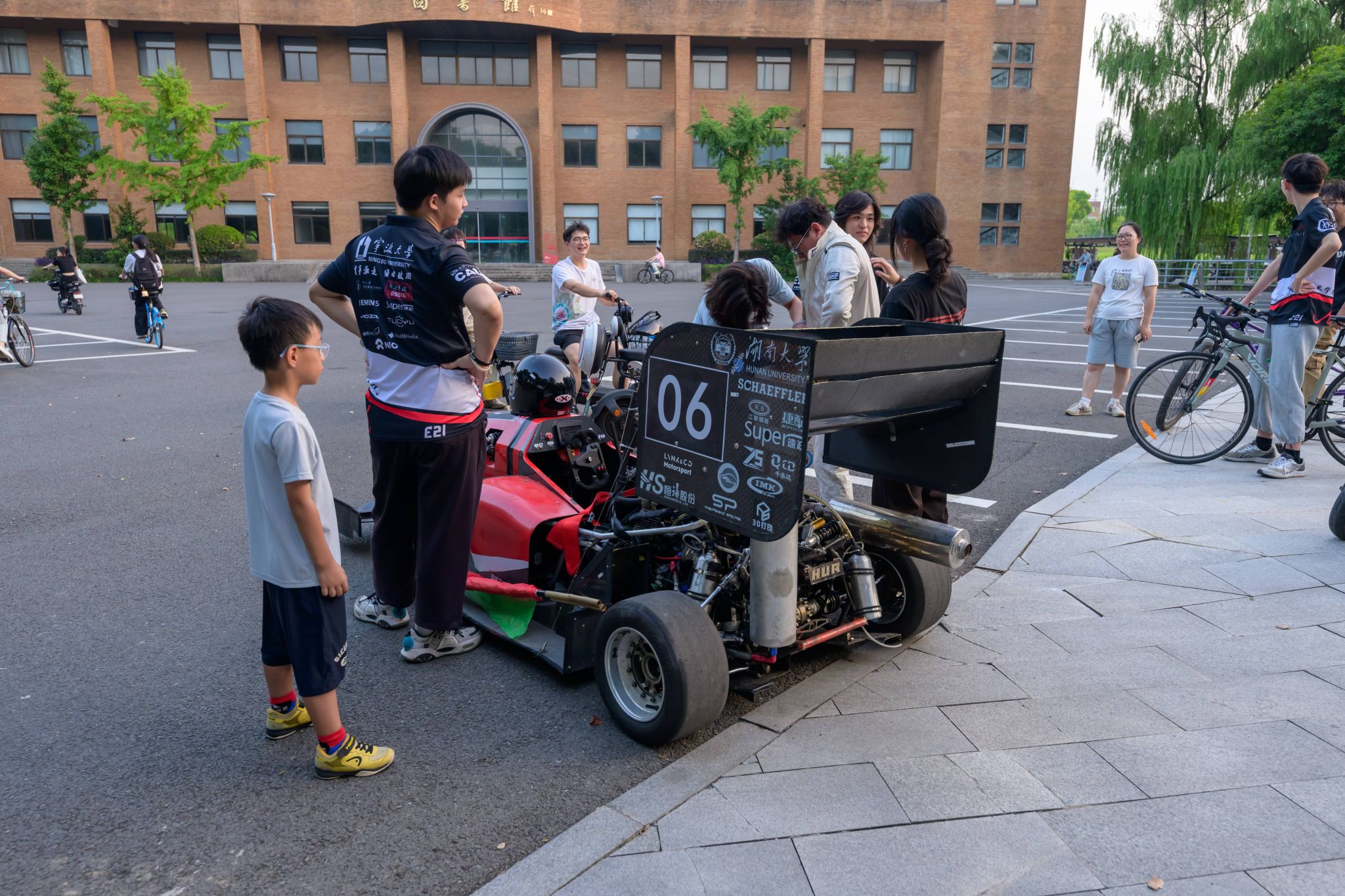 同学们纷纷拿出手机记录,这一刻,不仅让在场的每一位新生感受到了赛车运动的震撼与魅力,更激发了他们对机械、车辆工程等学科的浓厚兴趣与向往。