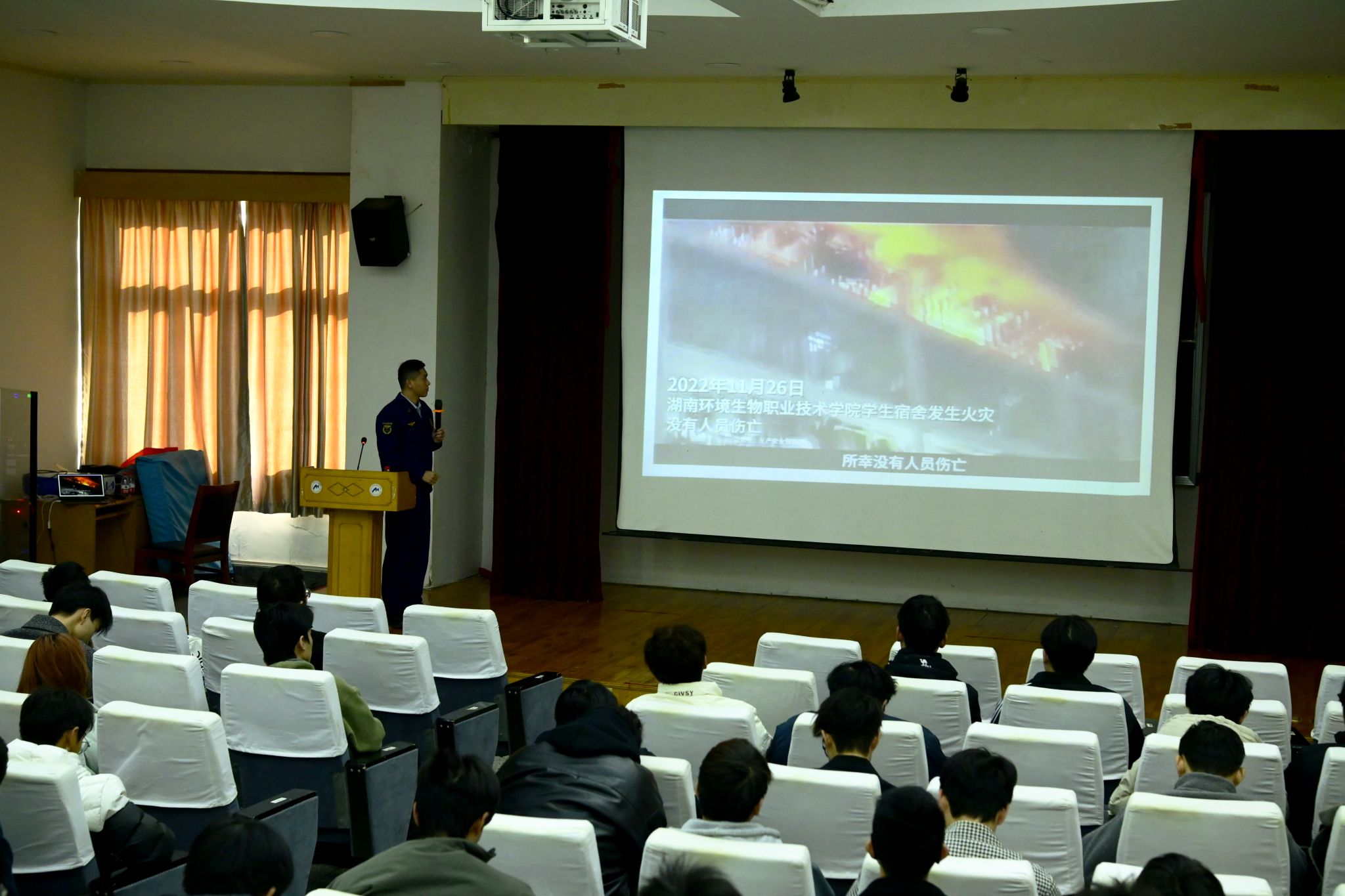 活动伊始,泮站长以近年来高校火灾案例为切入点,结合寝室、实验室、教室等校园重点场所特点,详细剖析了违规用电、易燃物堆积、实验操作不当等常见隐患。通过播放火灾现场视频与数据图表,他强调:“校园火灾具有燃烧猛、蔓延快的特点,3分钟内火势即可突破单间,掌握科学逃生知识是自救的关键。”随后,副站长系统讲解了火灾报警要点、疏散路线规划、防烟面罩使用等技能,并现场演示了“弯腰低姿捂口鼻”的标准逃生姿势,师生们认真记录并跟随模拟演练。
