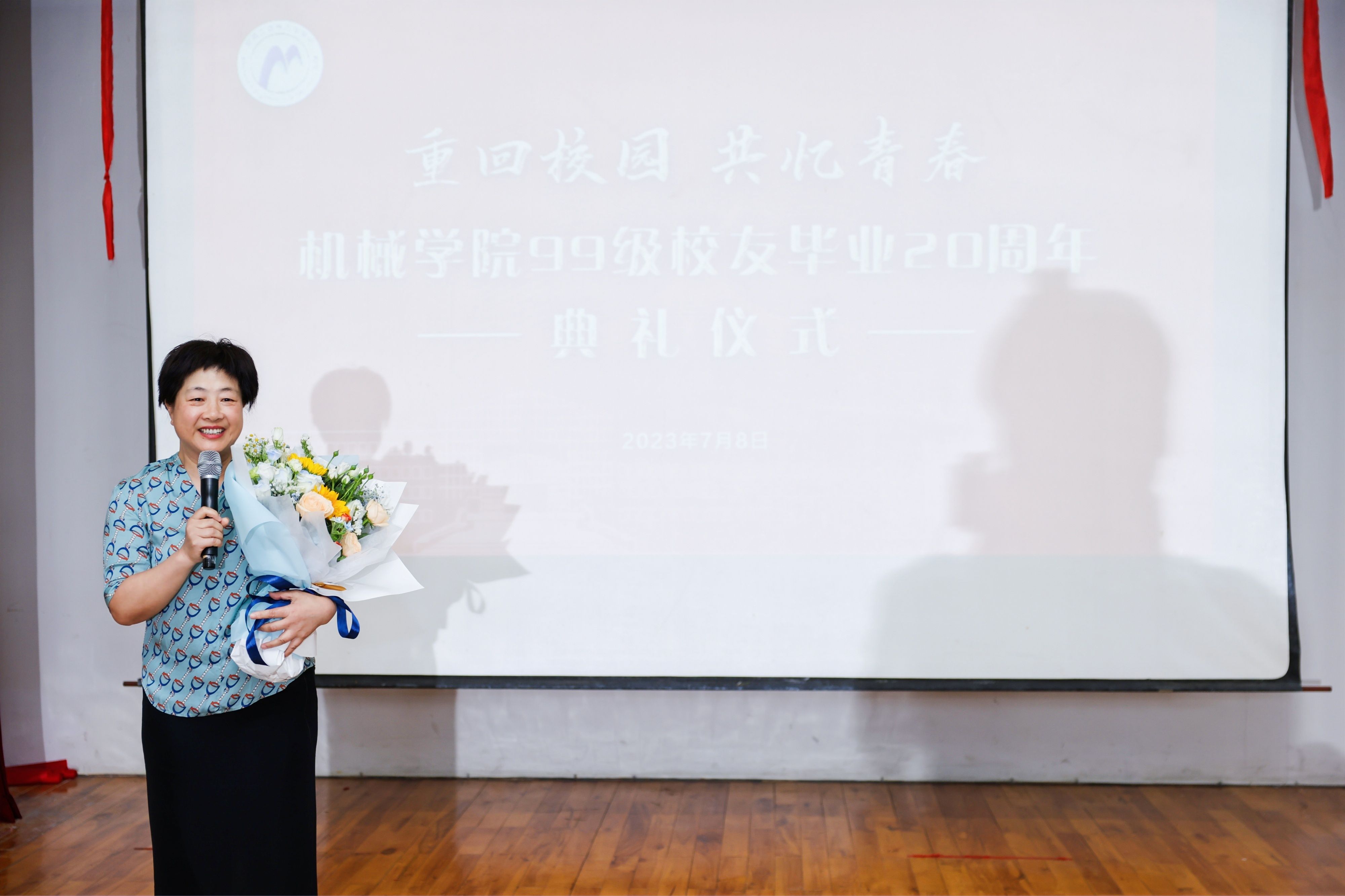 8日下午,绣山工程楼报告厅内温情暖暖、掌声不断。学院领导王智腾书记、沈妍伶副书记,教师代表方志梅、蒋亚楠、张小芳、费春华、宋臻、常云发出席了本次机械学院99级校友毕业20周年典礼, 992班姚文俊校友担任了主持人。