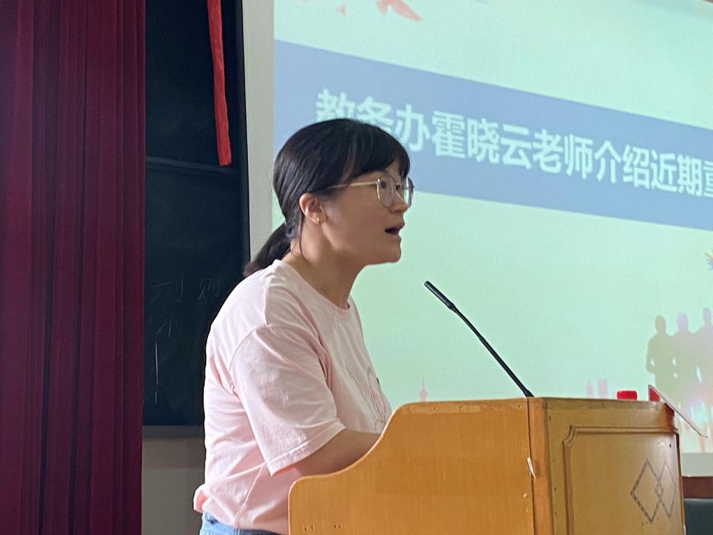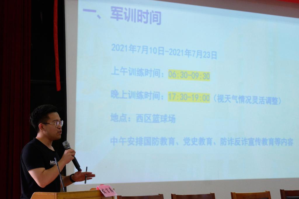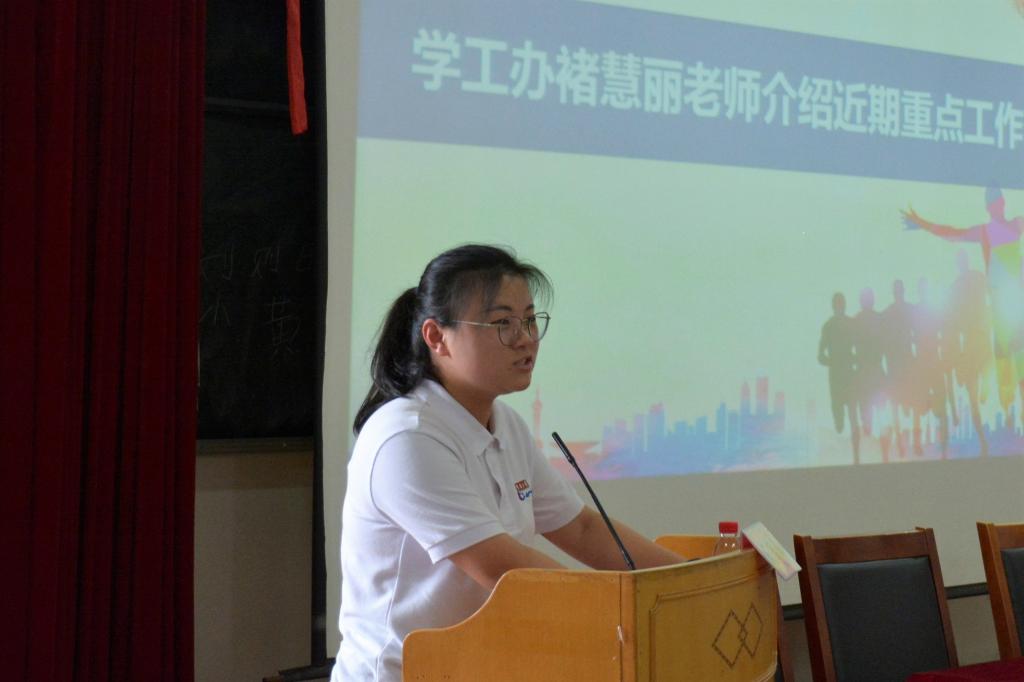 此后,教务办霍晓云老师和学工办褚慧丽老师介绍近期重点工作安排;学工办陈乐鸣老师介绍军训相关事宜安排。通过相关老师的讲解,“新生”们大概了解了学院重点工作以及军训的相关事项。