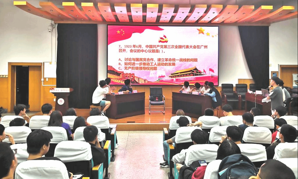 历史照亮未来,征程未有穷期。党的历史是最生动、最有说服力的教科书。为庆祝中国共产党建立100周年,进一步推动党史学习教育走深走心走实,5月12日,机械学院组织开展“永远跟党走”党史知识竞赛,由党校学员组成的12支队伍参加了比赛,200余名学生现场观看学习。通过现场竞赛的方式,深化和巩固学习党史成果,激发学习党史热情。