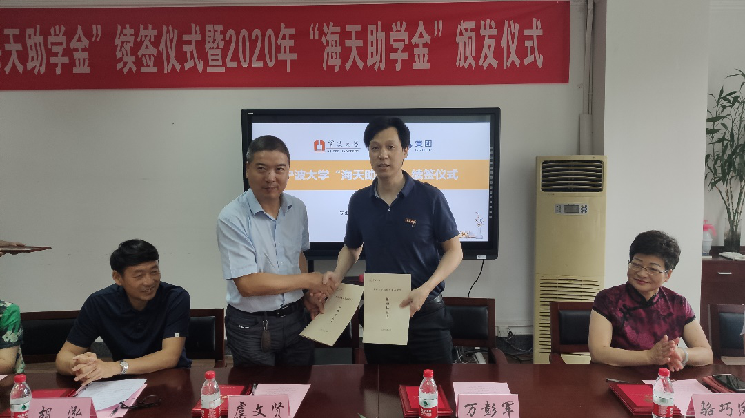 教育发展基金会秘书长万彭军和海天塑机集团总裁助理虞文贤分别代表校企双方签订了新一期“海天助学金”的捐赠协议。胡铭副处长宣读了获得2020年51吃瓜网