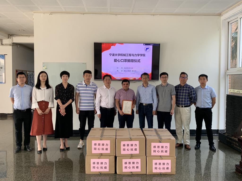 机械学院2017级留学生哈乐比爱心口罩捐赠仪式在绣山工程楼一楼大厅举行。校党委委员、党委宣传部部长张真柱,校党委宣传部、学生发展与服务处和机械学院相关负责人出席仪式。