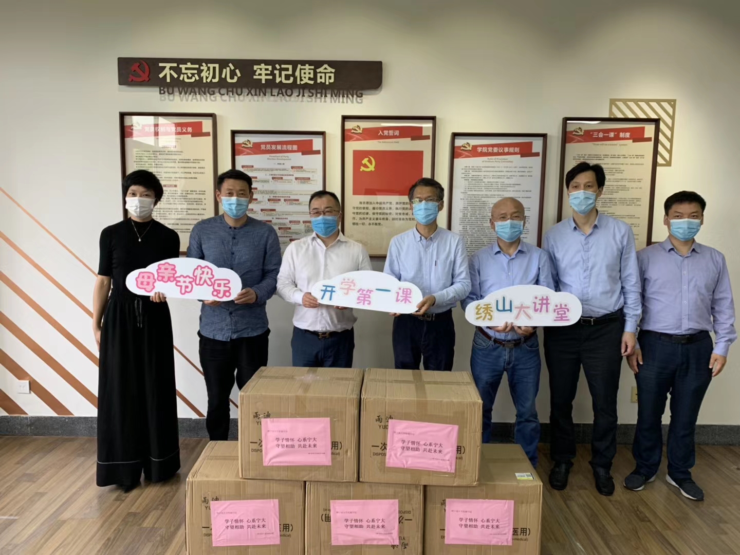 会上,还简短进行了董建伟校友向机械学院捐赠10000只口罩的爱心捐献仪式。学生代表则以一份有着光荣传统且十分鲜明机械专业特色的纪念礼物,感谢董学长。活动前,校友办和机械学院相关负责人,与董建伟校友一行进行了座谈交流。