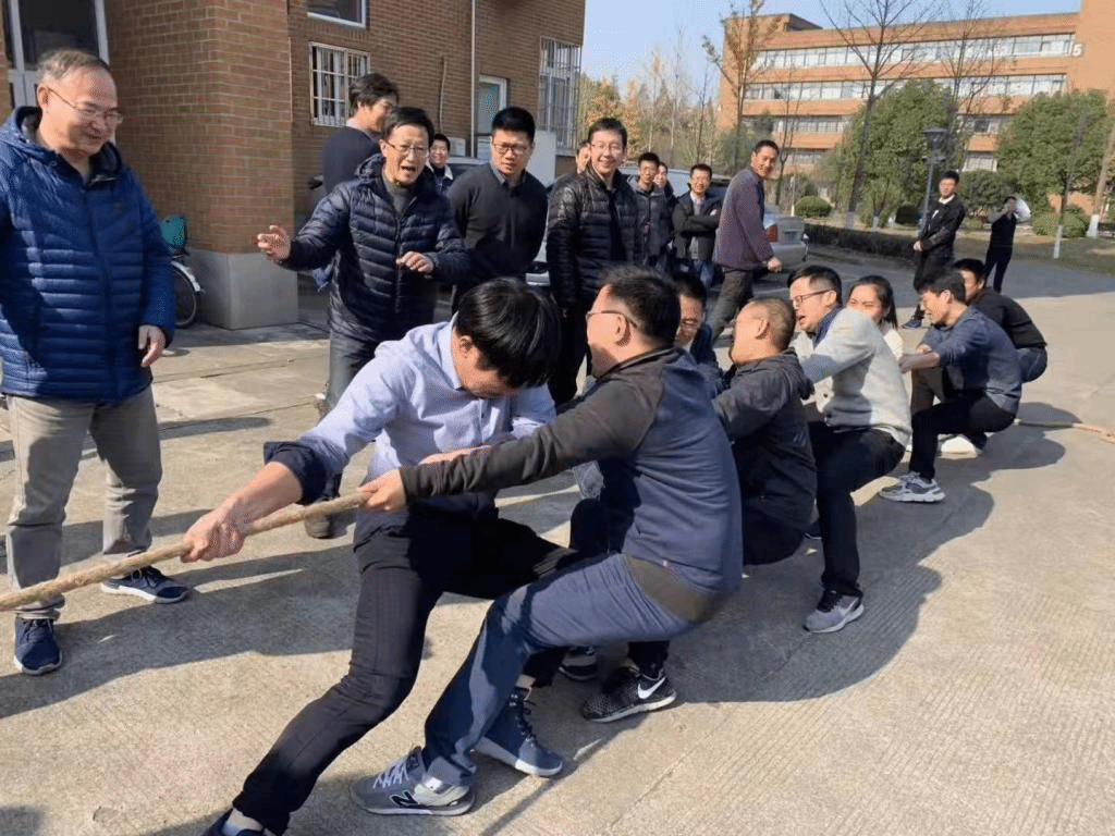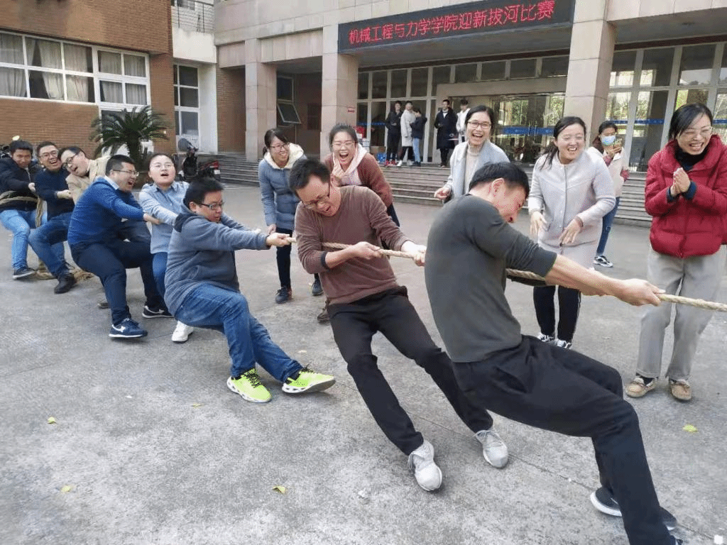 分工会组织了2019年机械学院“迎新年”教职工拔河比赛。本次拔河比赛以基层组织为单位,每单位最多可派两支队伍参加比赛,抽签分组后采取“小组赛—淘汰赛—决赛”的比赛形式。