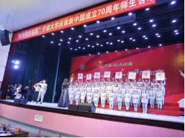 为庆祝新中国成立70周年,由校工会,校团委,校党委宣传部联合主办的“我和我的祖国”大型师生合唱比赛9月27日中午在林杏琴会堂拉开帷幕。此次比赛共有来自全校各部门、各学院的二十九支队伍参加,林杏琴会堂歌声如潮,宁大师生热情似火。