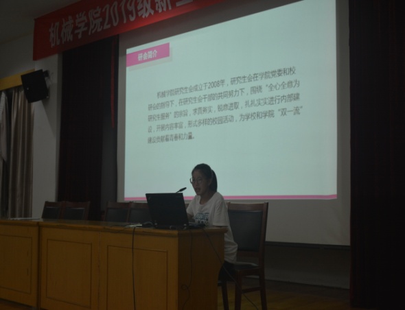 宣讲活动开始由研会主席初广香介绍各部门的职责分工,她鼓励有兴趣有特长的同学加入研会服务他人,锻炼自己。然后各位部长根据本部门的工作性质和职责介绍了一年来组织的各类活动以及本部门的优势所在,并表达了对新生能够加入研会的热烈欢迎。研究生辅导员张万兵老师作了总结发言,他希望大家根据自己的兴趣爱好、职业规划、时间分配等方面综合考虑,秉承服务同学的宗旨和乐于奉献的精神,加入机械学院研究生会。宣讲活动最后,新生们也向意向部门的负责人进行了提问,都得到了详细解答,使新生们对院研会有了清晰的认识。