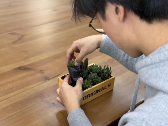 随后进入沙生植物创作环节,党员们领取多肉植物、花盆、彩石等材料,充分发挥创意进行自由创作,制作出一个个个性化的沙生植物作品。在动手实践过程中,党员们切实感受到绿色种植带来的乐趣和成就感,也加强了对生态文明建设的认同。