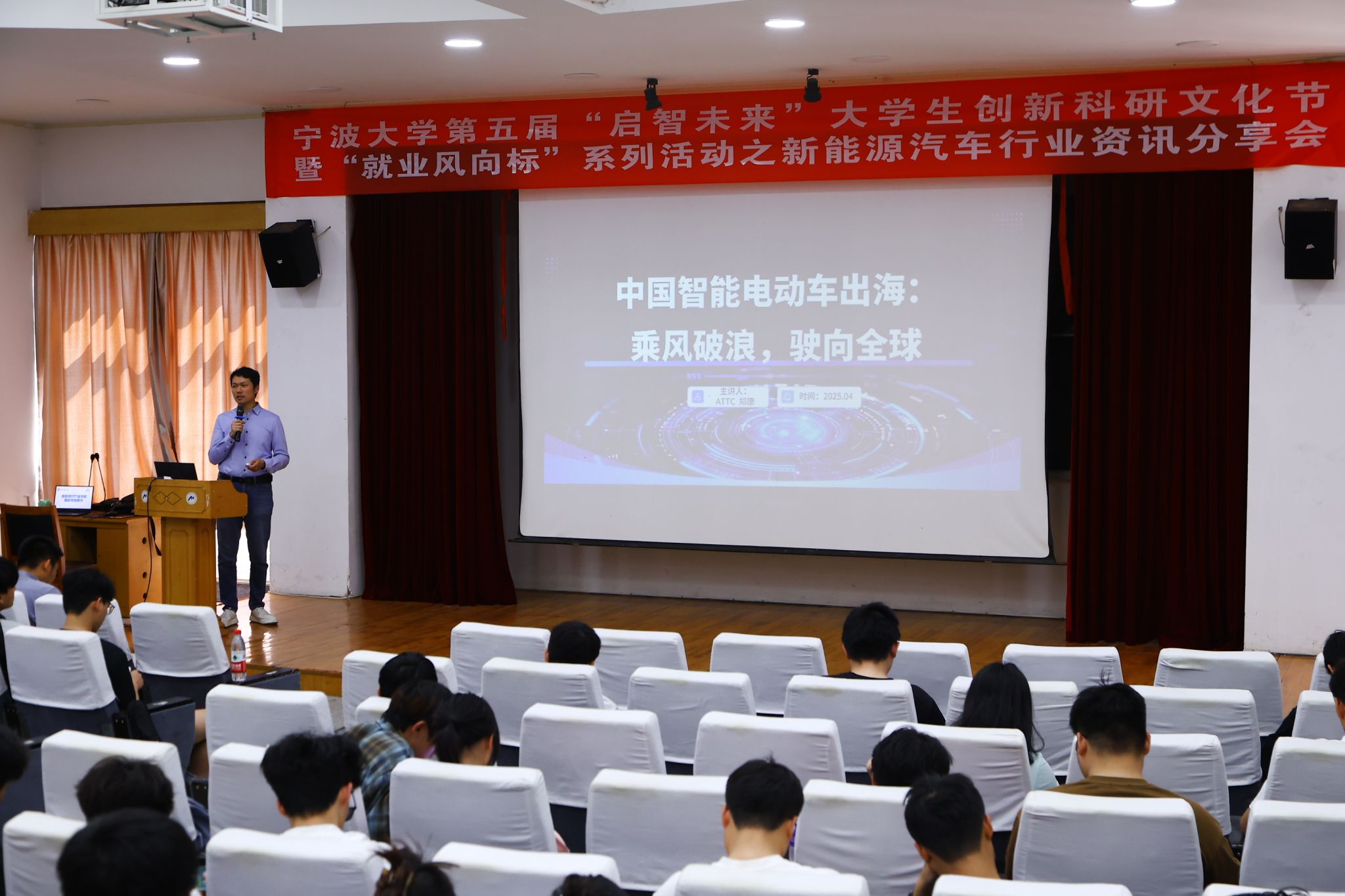 本次活动,特邀浙江埃科汽车技术服务有限公司埃科汽车技术产业研究院院长郑康博士担任主讲嘉宾。郑康院长以《中国智能电动车出海:乘风破浪,驶向全球》为主题,结合习近平总书记有关“当前世界百年未有之大变局加速演进”的重要论述,以及全球新能源汽车市场动态与技术创新情况,剖析中国车企国际化布局的核心竞争力。同时,通过使用大量视频图片资料和典型案例等,讲述中西方间的汽车文化差异和出海车企面临的机遇与挑战。活动中,郑院长还简要介绍了公司的业务范围、招聘需求和能力要求等,热忱欢迎大家的加入,并就同学们关心的“技术壁垒突破”“职业发展方向”“专业就业实习”等话题进行互动交流。