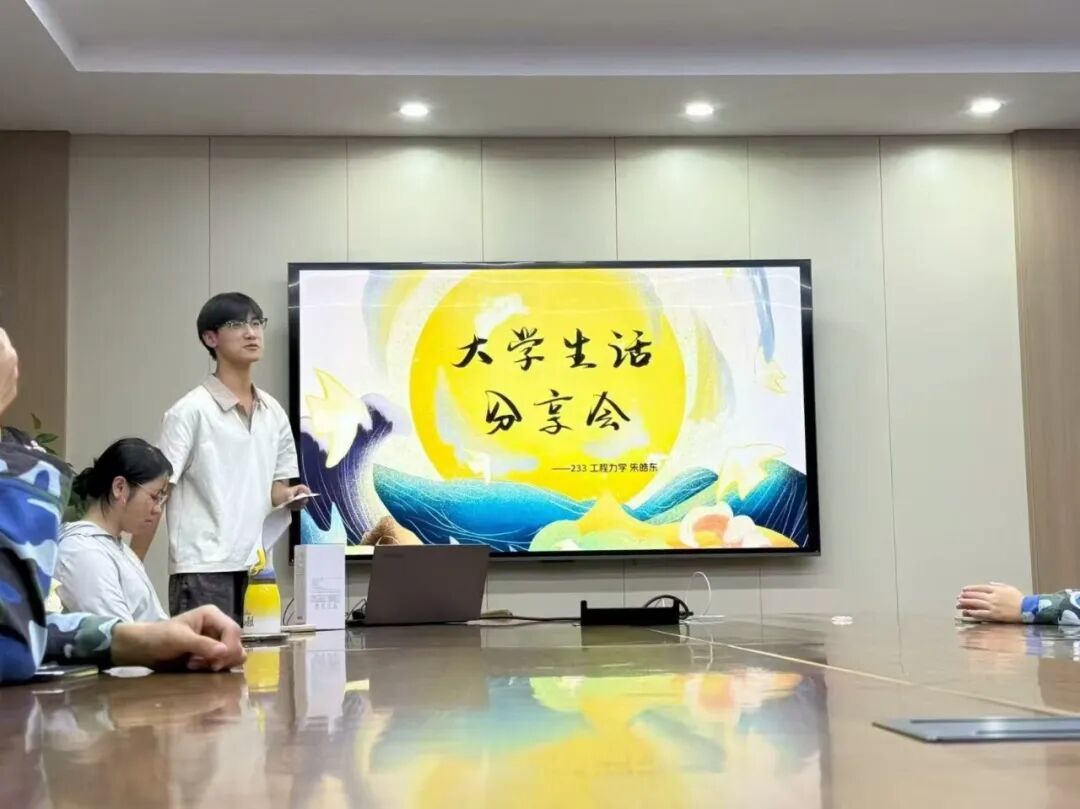 为帮助大一新生,8月31日晚,在绣山工程楼208室举行了一场别开生面的学姐学长经验分享会,多位优秀学长学姐倾囊相授,分享宝贵经验与独到见解,为与会同学提供了实用而丰富的指导。243工程力学(拔尖人才创新班)夏薇学姐结合自身大一阶段的经历,生动讲述了大学生活的丰富多彩与无限可能,并就高效学习方法提出了实用建议。分享结束后,她贴心留下联系方式,便于后续为同学们答疑解惑、深入交流。225工业工程班励杭哲学长则依托丰富的科研经历,系统介绍了科研工作的各个环节,包括前期准备、典型问题及应对方案等,帮助同学们对科研实践建立了更清晰的认识,增强了参与信心。他也留下了联系方式,欢迎同学们进一步咨询。最后,223工程力学(拔尖人才创新班)施思学姐对会议内容进行了系统总结与补充,深入剖析了同学们未来可能面临的各类问题,并细致解读了相关校内政策,助力大家对校园生活形成更全面、清晰的认知,进一步增强了对未来的期待与信心。