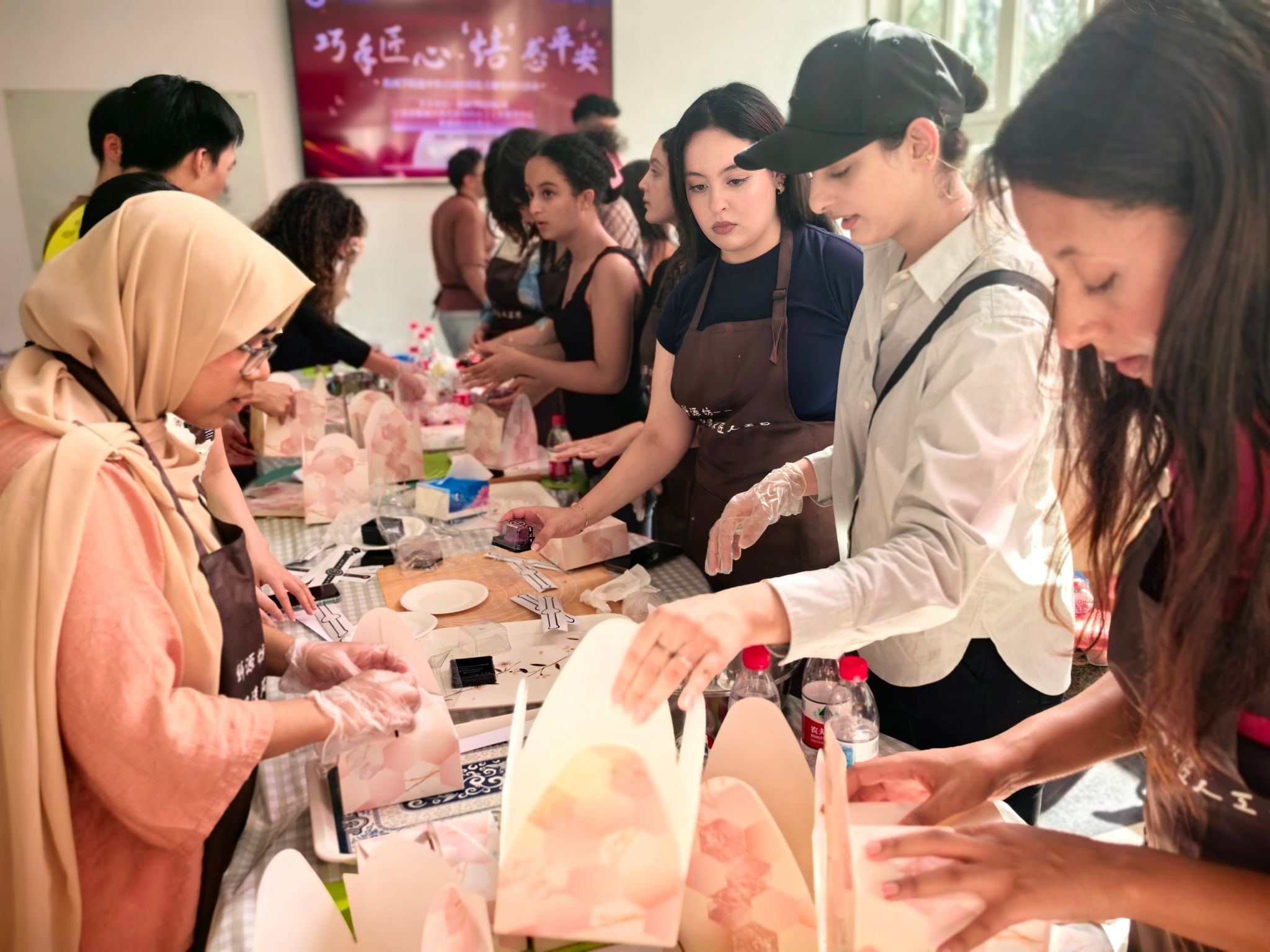 当香气弥漫整个大厅,留学生们纷纷举起手机记录金黄酥脆的成果。更暖心的是,学生们自发将部分点心打包,送给老师和后勤工作人员。“老师常提醒我们防止电信诈骗,今天换我们送她‘平安酥’!”摩洛哥学生SAAD的话引来一片掌声。