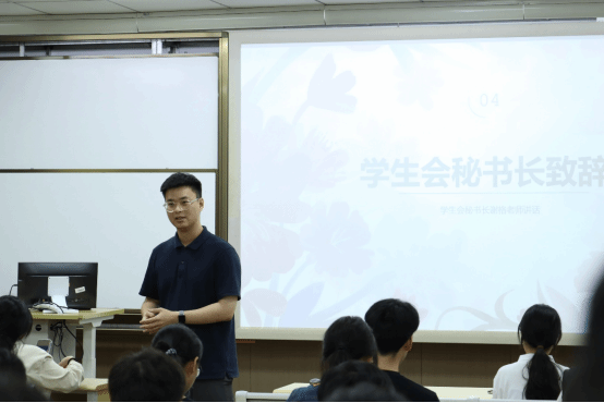 随后,由团委副书记潘婧老师和24届学生会主席蒋启圣为25届团学工作者们带来2024年团委、学生会工作汇报,与大家分享了过去一年的工作成果与宝贵经验。
