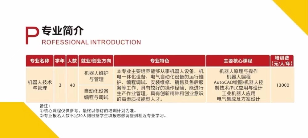 2019级“高技能创新创业班”机器人技术与管理专业招生简章
